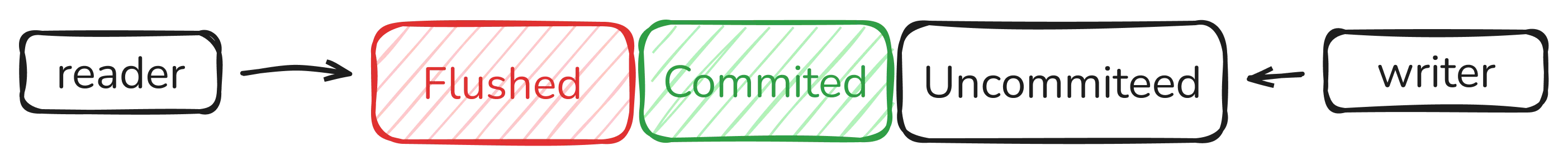 Our approach presents a message queue, which supports concurrent writes and reads (with some limitations, which will be discussed later). Also, sdb::message::Message has terms such as committed and uncommitted data: